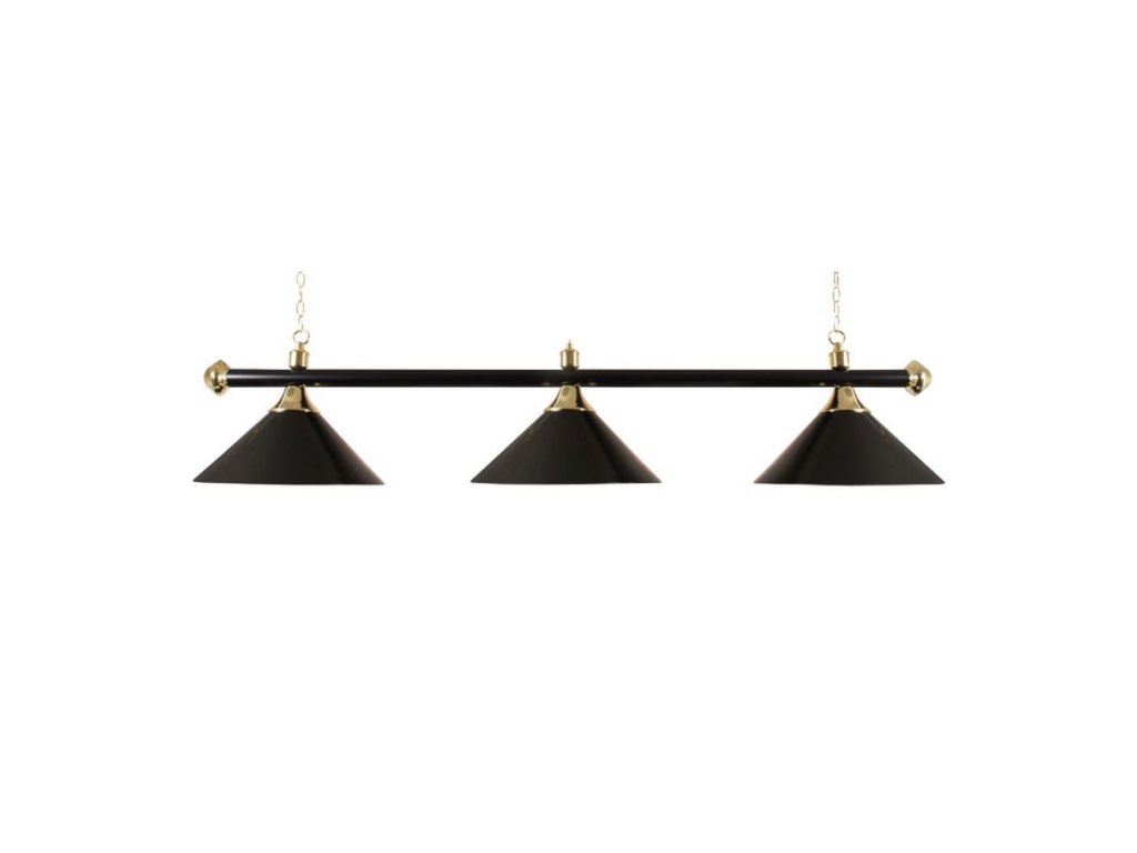 Biliardová lampa Buffalo Baron 3 čierna Čierne tienidlá, čierna tyč.Elegantné osvetlenie, ideálne k biliardový stolom 7, 8, 9 ft.Set obsahuje kompletné príslušenstvo okrem žiaroviek s predpripravenou kabelážou.Farba: čiernaCE a ROHS certifikátDľžka: 150 cmKryt - priemer: 37 cmReťaz - dľžka: 142 cmPoužívať žiarovky max. 60W!Výrobca: Buffalo