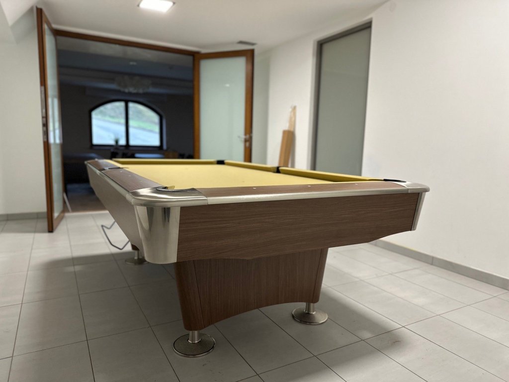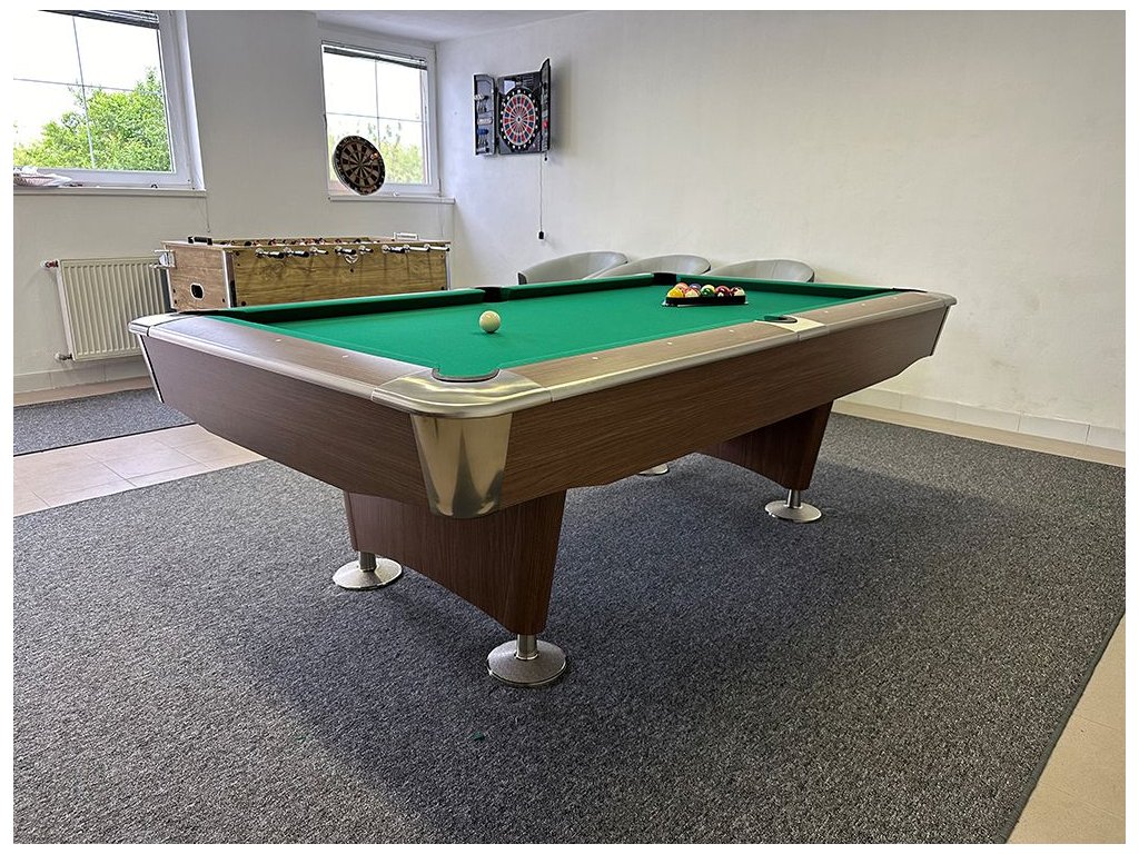 Stôl je ideálnou voľbou pre použitie doma alebo v klube. Stôl v modernom, súťažnom štýle, veľkosť 7 stôp. Stôl sa vyznačuje vysokou kvalitou, s kovovými spojovacími časťami v 4 rohoch, vďaka ktorým je horný rám veľmi stabilný.