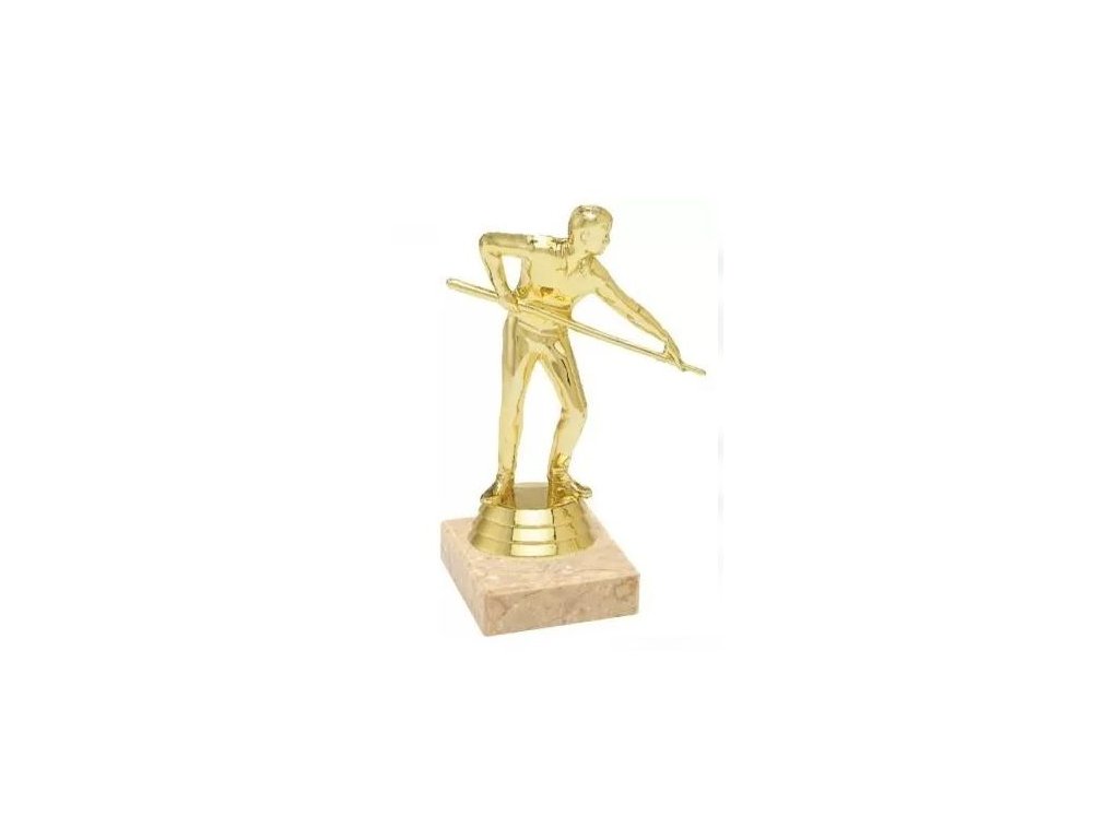 Elegantná trofej so zlatou postavou biliardového hráča na masívnom mramorovom podstavci. Skvelá voľba pre turnaje, klubové podujatia aj domáce súťaže. Výška 14 cm.