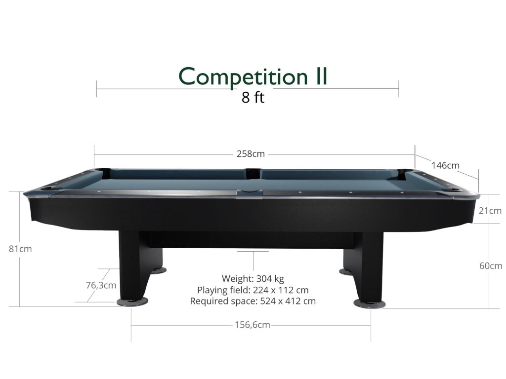 Turnajový biliardový stôl Dynamic Competition II 8ft, matná čierna